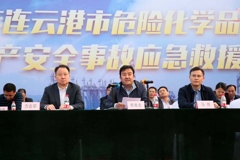 10月24日下午,2018年連云港市危險(xiǎn)化學(xué)品生產(chǎn)安全事故應(yīng)急救援演練在堿業(yè)公司舉行。連云港市副市長(zhǎng)華本太觀(guān)摩了應(yīng)急演練。市安監(jiān)局、市公安局、市消防支隊(duì)、市氣象局、環(huán)保局、堿業(yè)公司等部門(mén)和單位參加了此次演練。