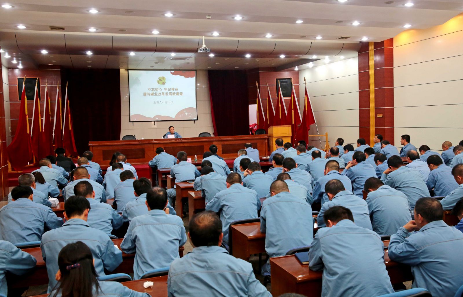 專題黨課上,公司黨委書(shū)記、董事長(zhǎng)張衛(wèi)民以“不忘初心、牢記使命,譜寫(xiě)堿業(yè)改革發(fā)展新篇章”為主題,從“守初心、擔(dān)使命,要深刻學(xué)習(xí)領(lǐng)會(huì)習(xí)近平新時(shí)代中國(guó)特色社會(huì)主義思想內(nèi)涵”、“守初心 擔(dān)使命 要充分認(rèn)識(shí)到公司與習(xí)近平總書(shū)記對(duì)國(guó)資國(guó)企工作要求的差距”、“守初心、擔(dān)使命,要善于運(yùn)用新思想指導(dǎo)實(shí)踐推動(dòng)工作”、“守初心、擔(dān)使命,需要全體黨員干部敢于斗爭(zhēng)敢于擔(dān)責(zé)”等四個(gè)方面,結(jié)合工作經(jīng)歷、學(xué)習(xí)體會(huì)、調(diào)研情況,為參會(huì)人員上了一堂精彩、生動(dòng)、嚴(yán)肅的專題黨課和形勢(shì)任務(wù)教育課。他要求全體黨員干部要用習(xí)近平新時(shí)代中國(guó)特色社會(huì)主義武裝頭腦,在本職崗位上勇于擔(dān)當(dāng)、履職盡責(zé),面對(duì)困難迎難而上,面對(duì)矛盾敢于碰硬,面對(duì)不良現(xiàn)象敢于亮劍,切實(shí)擔(dān)負(fù)起推進(jìn)公司做大做強(qiáng)做優(yōu)的職責(zé)任命,共同譜寫(xiě)公司高質(zhì)發(fā)展的新篇章。