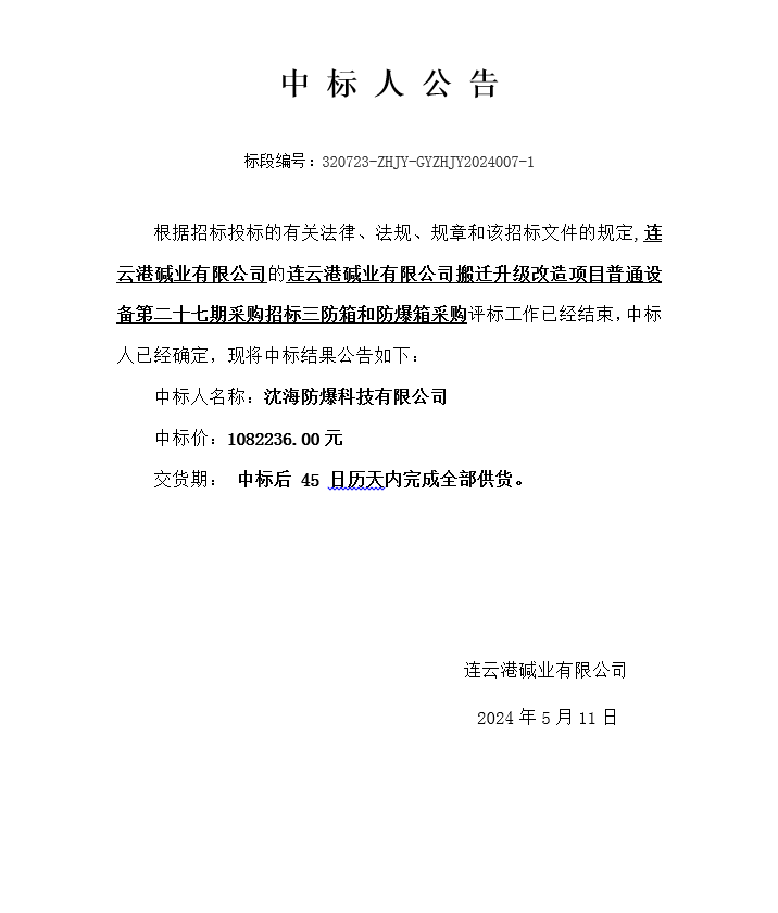 搬遷升級(jí)改造項(xiàng)目普通設(shè)備第二十七期采購招標(biāo)三防箱和防爆箱采購中標(biāo)人公告